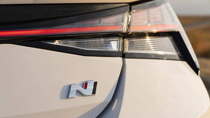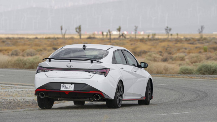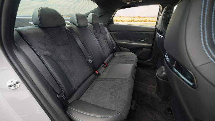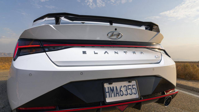 Ở phía sau, cánh gió thể thao gắn trên cửa cốp, cản sau được làm rộng hơn, bên dưới có bộ khuếch tán nhằm cải thiện tính khí động học. Elantra N 2022 có bộ khuếch đại âm thanh N Sound Equalizer với khả năng điều chỉnh mức độ tiếng ồn từ ống xả vào trong khoang lái. Ống xả trên xe cũng là loại có thể điều chỉnh on/off.