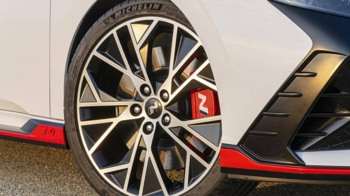 Ngoài ra, Hyundai Elantra N 2022 còn được nâng cấp hệ thống phanh với đĩa phanh 360 mm phía trước và 315 mm phía sau. Mâm xe 19 inch đi kèm với lốp Michelin Pilot Sport 4S (kích thước 245/35) cho độ bám đường tốt hơn. Bộ hút gió trước cũng được thiết kế lại giúp hệ thống phanh trên xe được làm mát tốt hơn.