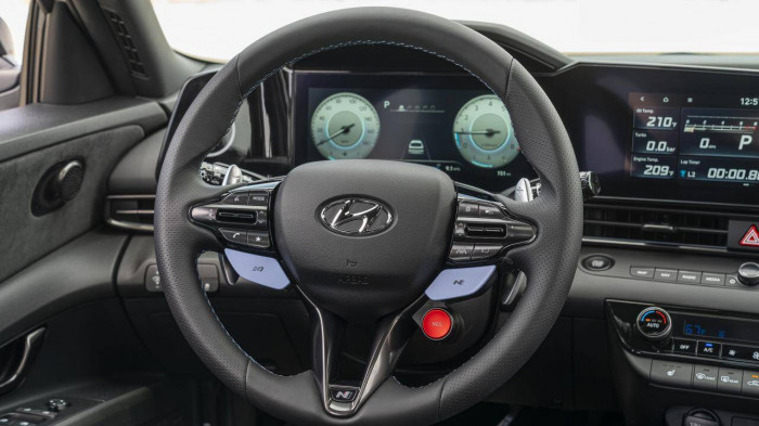 Khác với Elantra tiêu chuẩn, màn hình thông tin trên Elantra hiệu suất cao được tích hợp thêm các thông tin quan trọng như nhiệt độ dầu và nước làm mát, mô-men xoắn và áp suất bộ tăng áp.