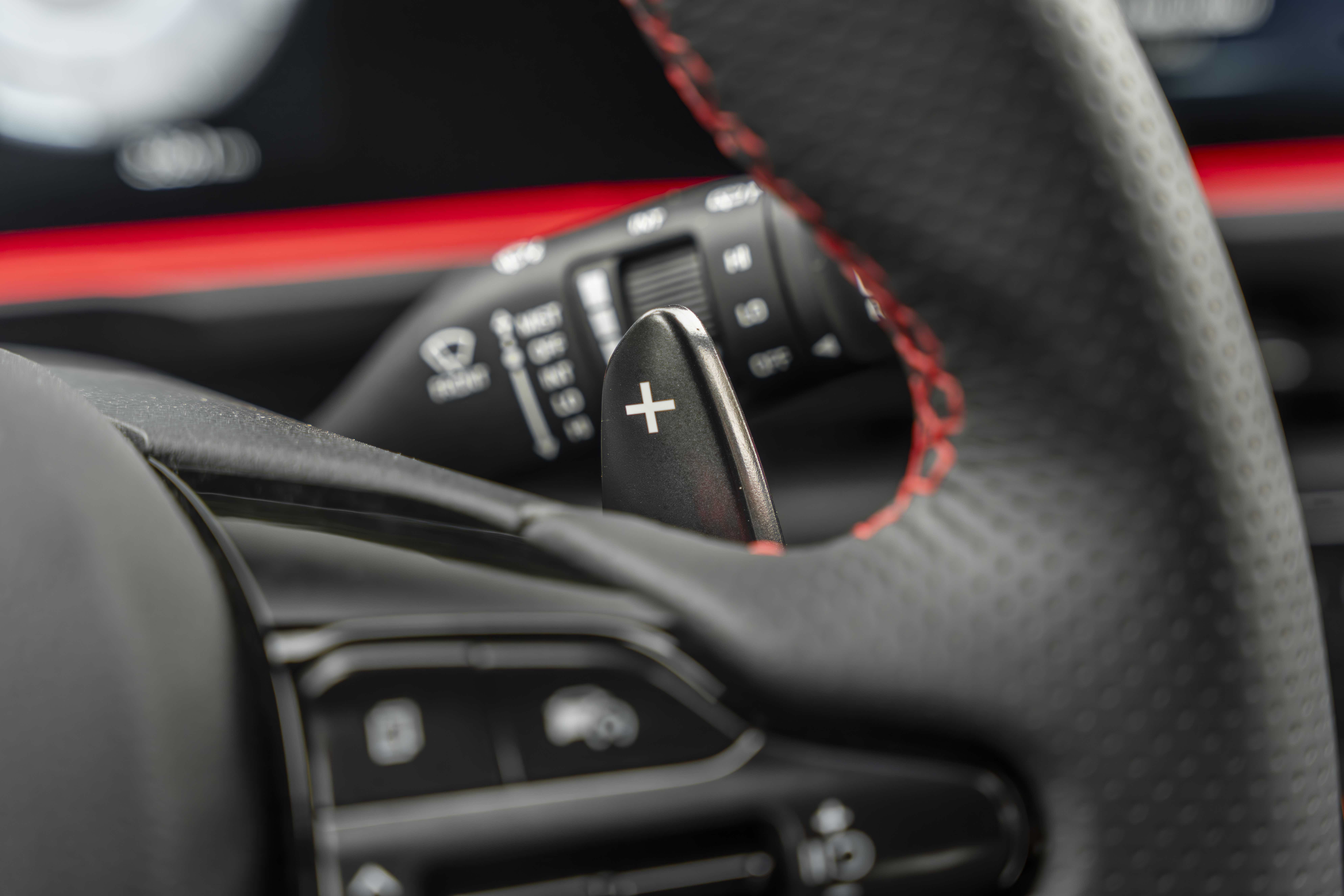 Vô-lăng của xe tích hợp các nút điều khiển thông minh, giúp người lái dễ dàng thao tác mà vẫn đảm bảo an toàn. Phiên bản N Line được trang bị cần số N đặc trưng cùng lẫy chuyển số trên vô lăng giả lập 8 cấp số, giúp tăng cường khả năng tăng tốc cũng như góp phần đem đến cảm giác vận hành thú vị.