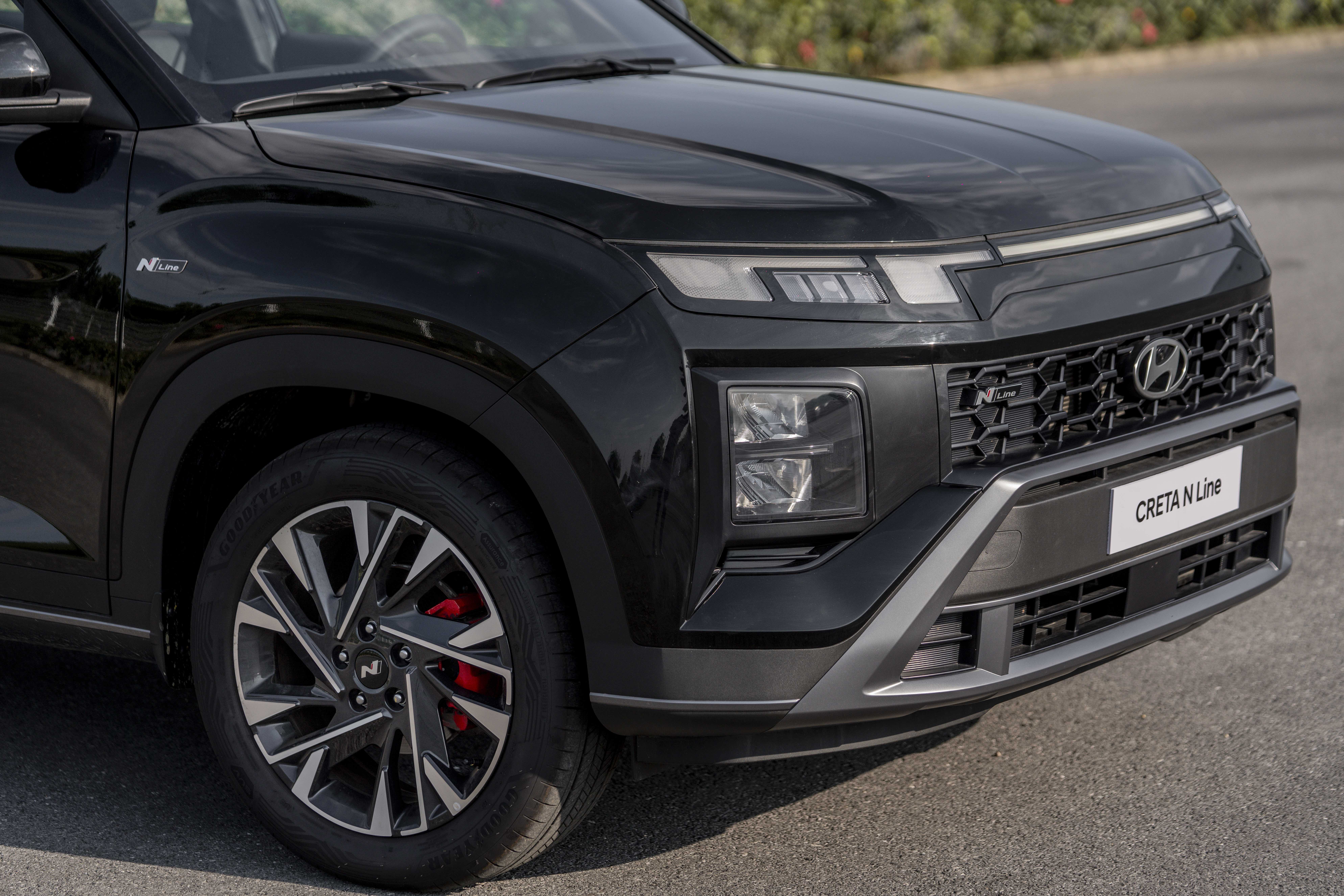 Đặc biệt, phiên bản thể thao N Line mang phong cách hầm hố hơn với cản trước/sau, phần ốp hông được sơn màu đỏ đặc trưng nổi bật. Creta N Line còn được trang bị cánh lướt gió phía sau xe, giúp gia tăng tính thể thao và hiệu quả khí động học.