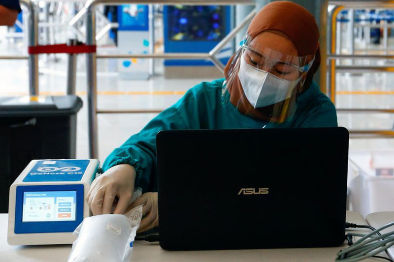 Indonesia đang triển khai một chương trình phát hiện người nhiễm virus SARS-CoV-2 gây bệnh viêm đường hô hấp cấp COVID-19 bằng cách sử dụng máy dò phát hiện virus này qua hơi thở.