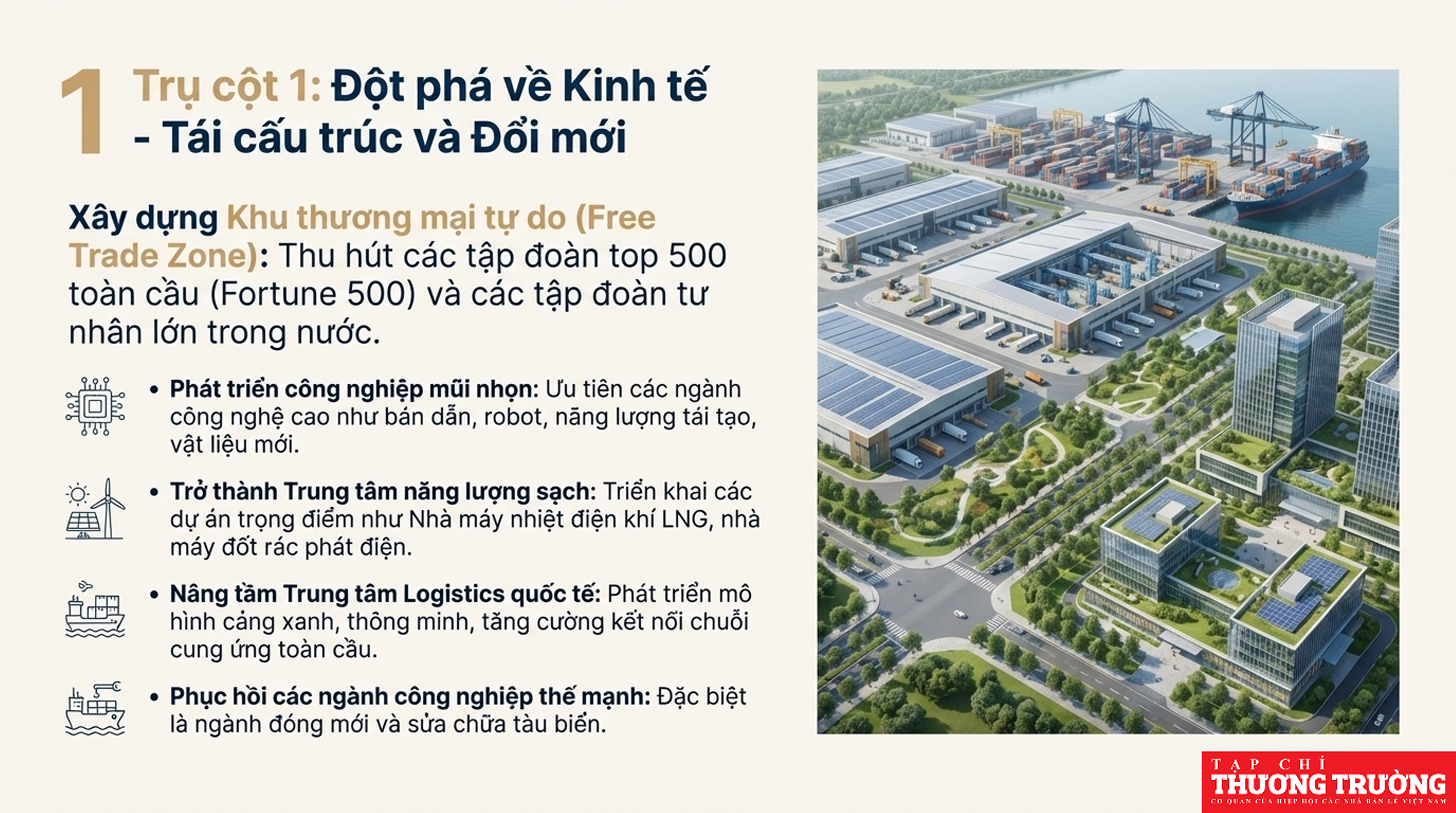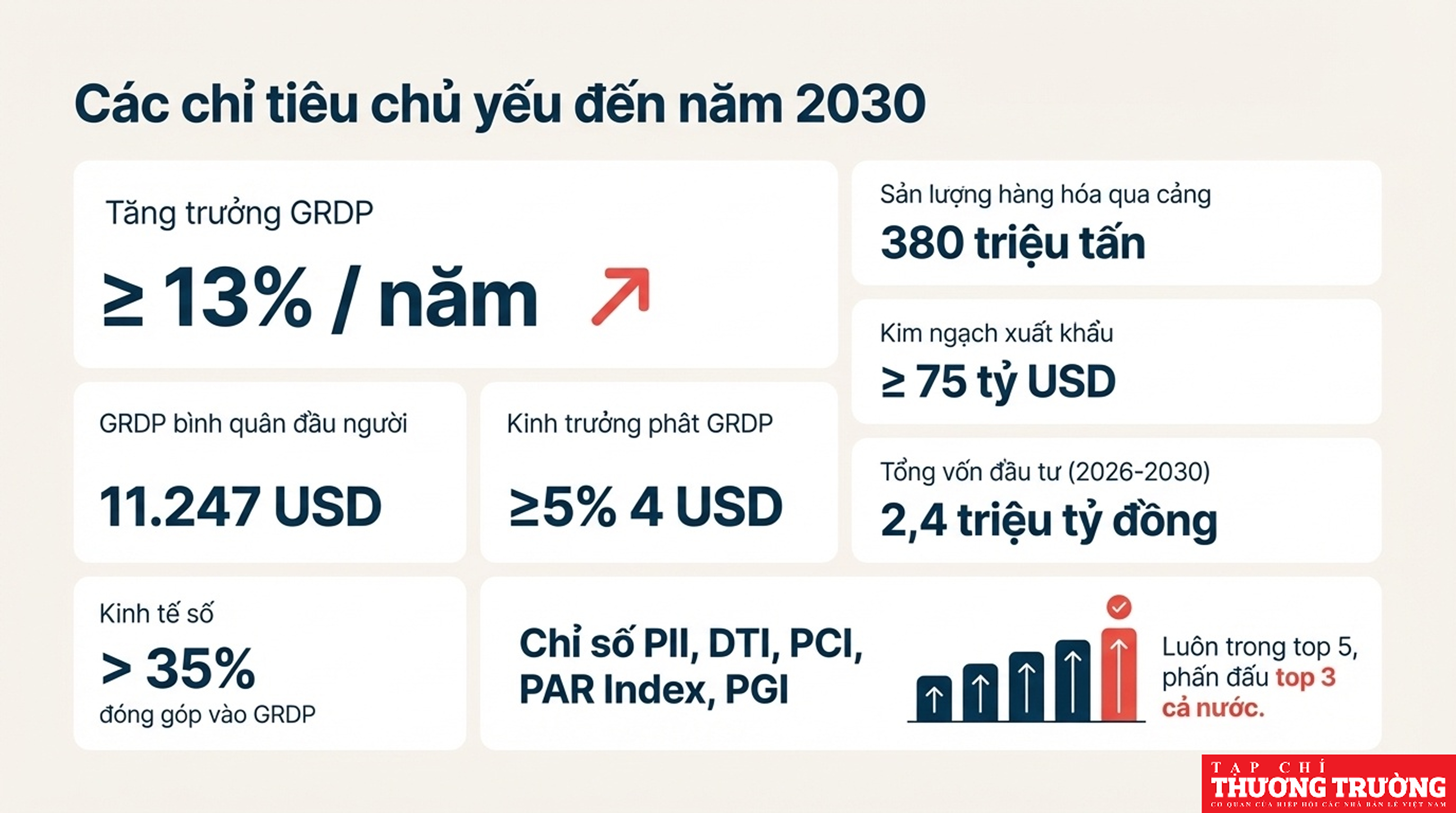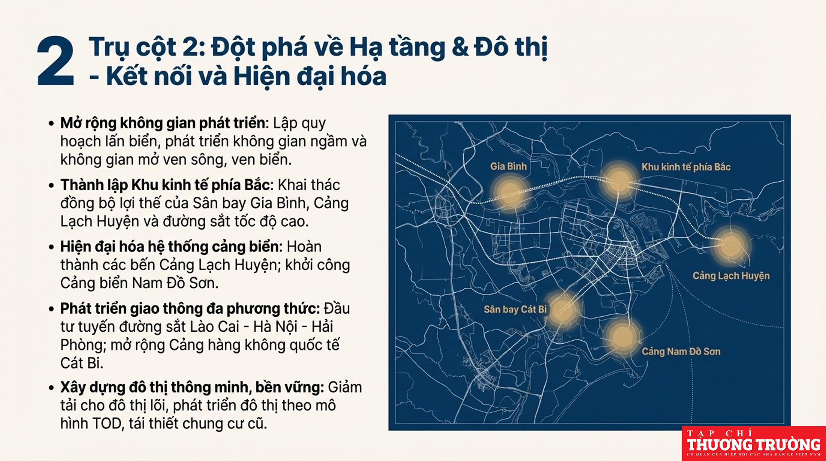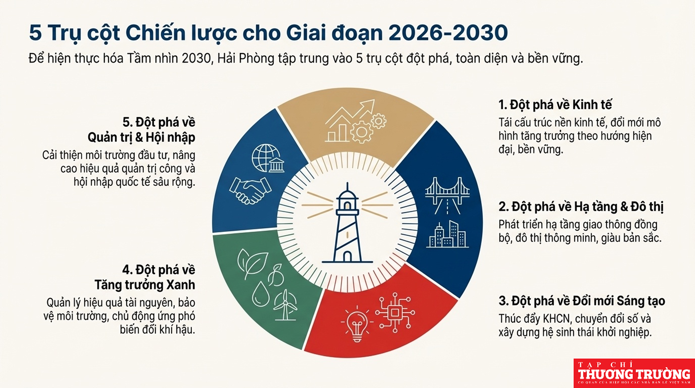 Hải Phòng tập trung vào mô hình đa cực, đa trung tâm, đa hành lang động lực, với mục tiêu tăng trưởng GRDP cao (khoảng 13-13.8%), đẩy mạnh công nghiệp công nghệ cao, logistics, kinh tế số, và cải thiện môi trường đầu tư để thu hút mạnh FDI, hướng đến phát triển bền vững, nâng cao chất lượng sống và giữ vững quốc phòng - an ninh.