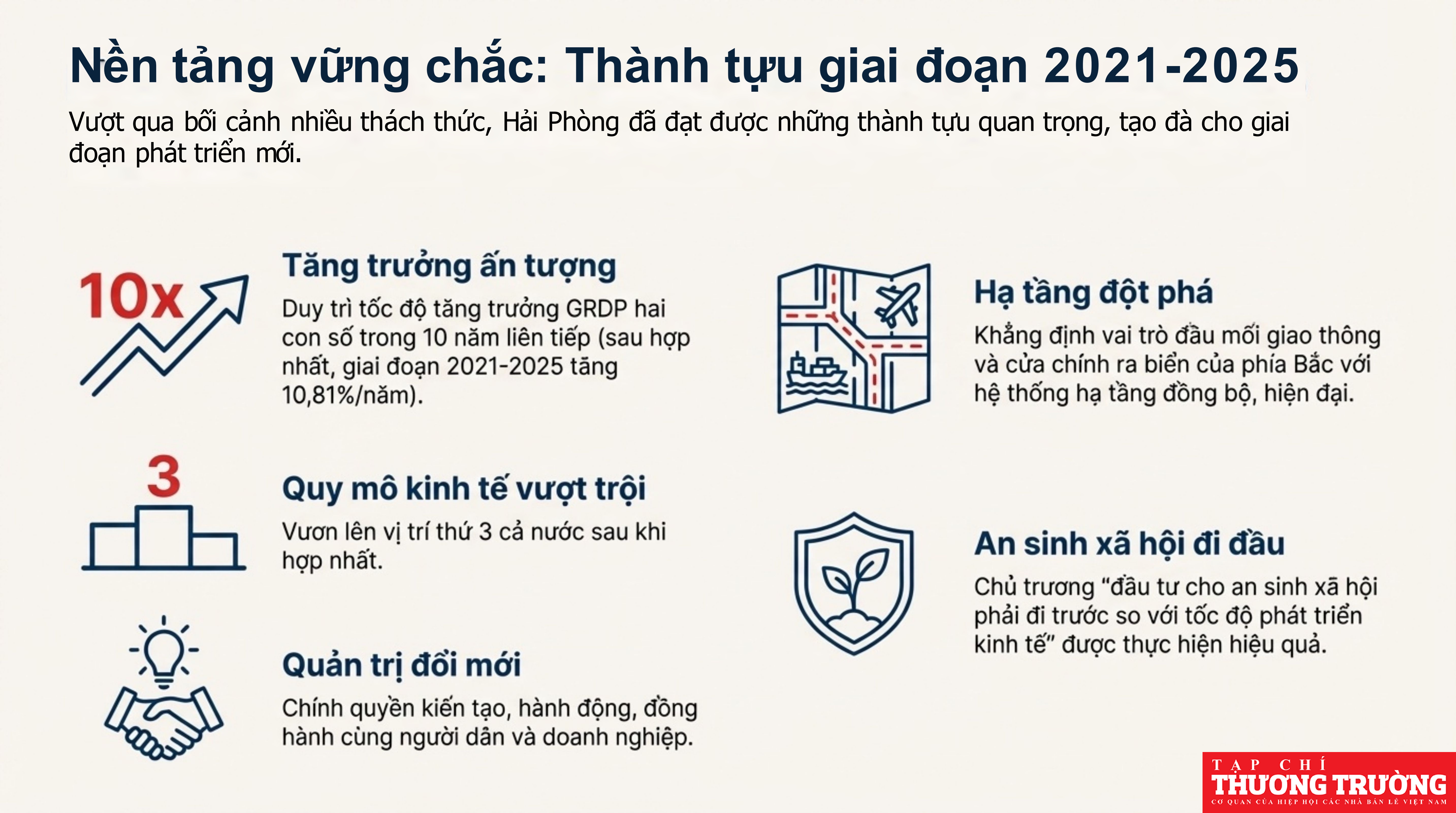 Cuối năm 2025, thành phố Hải Phòng đã có 2 Nghị quyết rất quan trọng nhằm định hướng sự phát triển toàn diện của thành phố Cảng với việc đánh giá kết quả đạt được sau giai đoạn hợp nhất (Hải Phòng, Hải Dương) và đề ra kế hoạch chiến lược 5 năm (2026 - 2030) cùng nhiệm vụ cụ thể cho năm 2026.