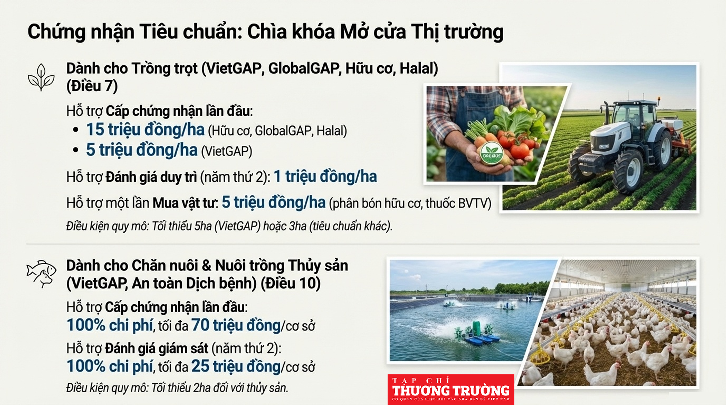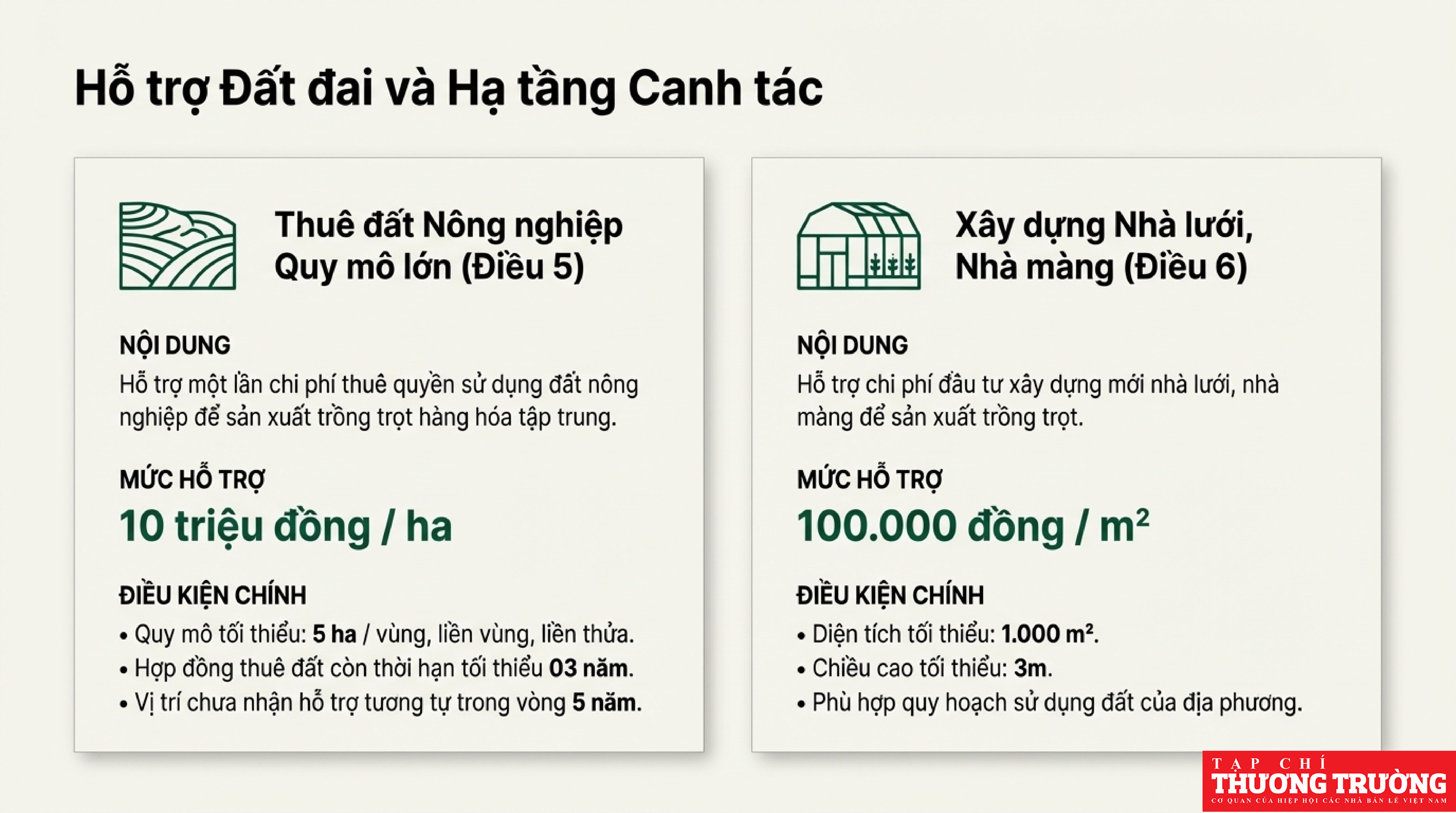 Nghị quyết này có nội dung chính tập trung vào các hình thức hỗ trợ tài chính cho các tổ chức và cá nhân sản xuất nông nghiệp, bao gồm hỗ trợ thuê đất, xây dựng nhà lưới/nhà màng, áp dụng các tiêu chuẩn chất lượng (như VietGAP, Global GAP, Halal), cơ giới hóa, phát triển nuôi trồng thủy sản thâm canh/công nghệ cao, chứng nhận OCOP, và hỗ trợ các hoạt động xúc tiến thương mại.