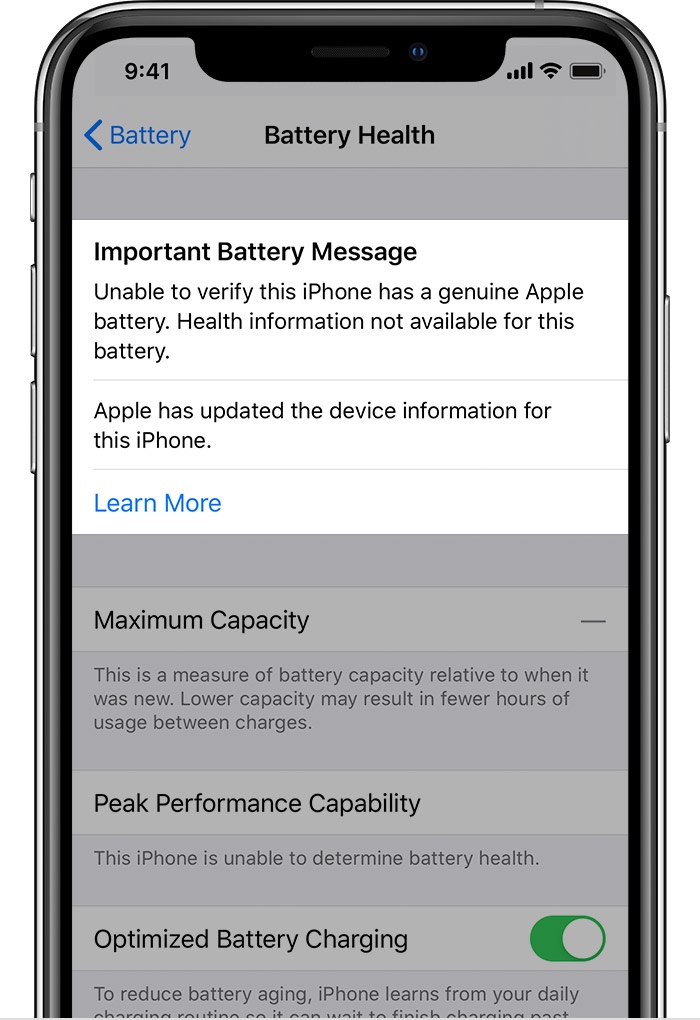 Sau khi Apple cung cấp phụ tùng chính hãng để sửa chữa các thiết bị tại cửa hàng, iPhone không khuyến khích người dùng sửa chữa tại nhà bằng việc tiếp tục đưa ra cảnh báo nếu màn hình thiết bị đến từ hãng thứ ba.