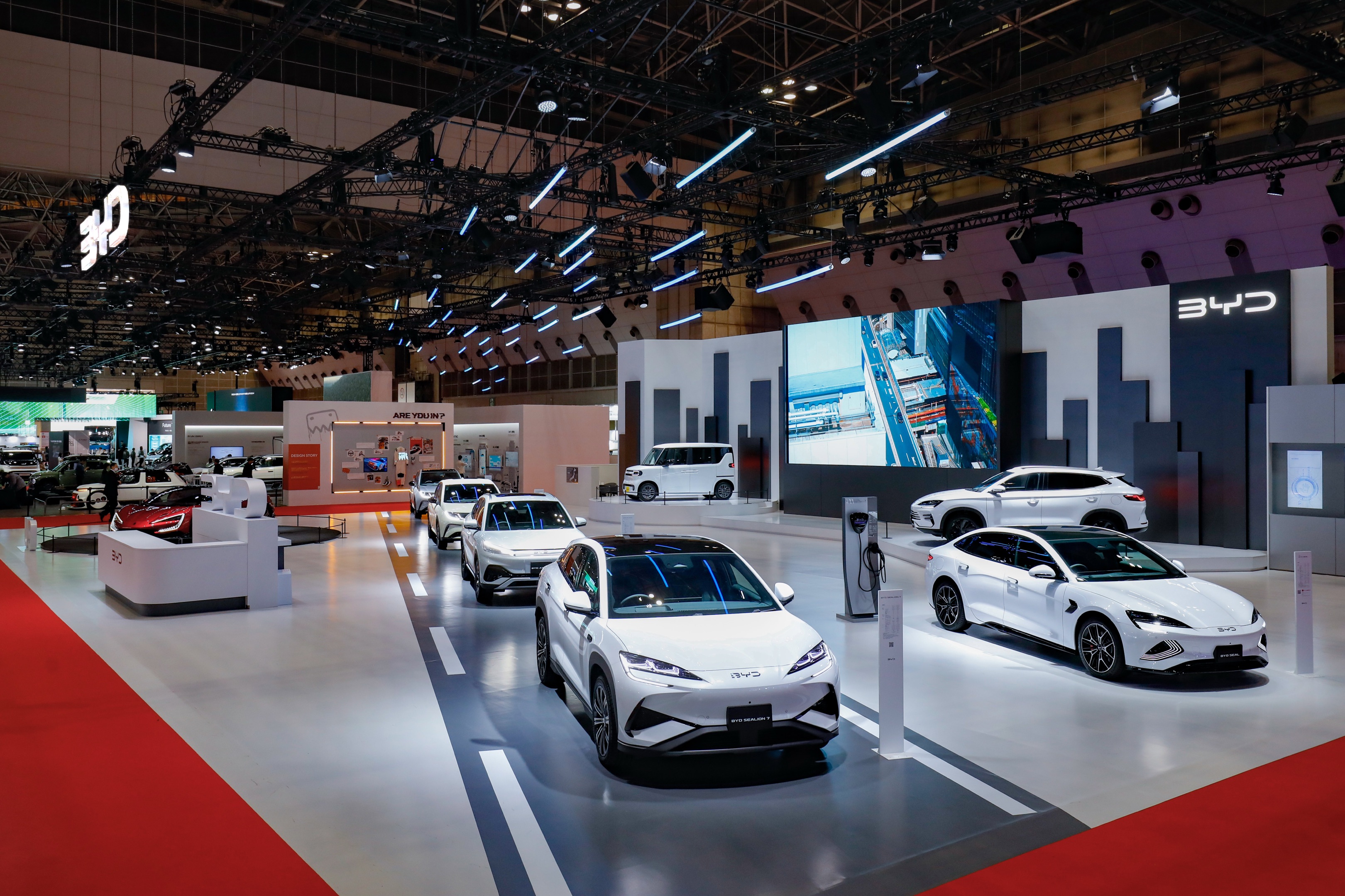 Tại Japan Mobility Show 2025, BYD trưng bày các mẫu xe mới nhất của thương hiệu như BYD RACCO và BYD SEALION 6 DM-i, cùng với phiên bản nâng cấp của các mẫu xe BYD ATTO 3, BYD DOLPHIN, BYD SEAL và siêu xe YANGWANG U9 đến từ thương hiệu cao cấp YANGWANG.