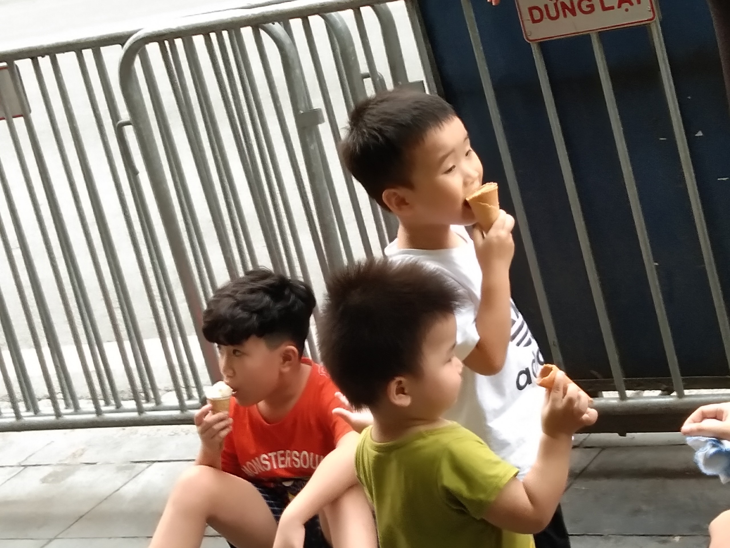Các em nhỏ thích thú thưởng thức kem.