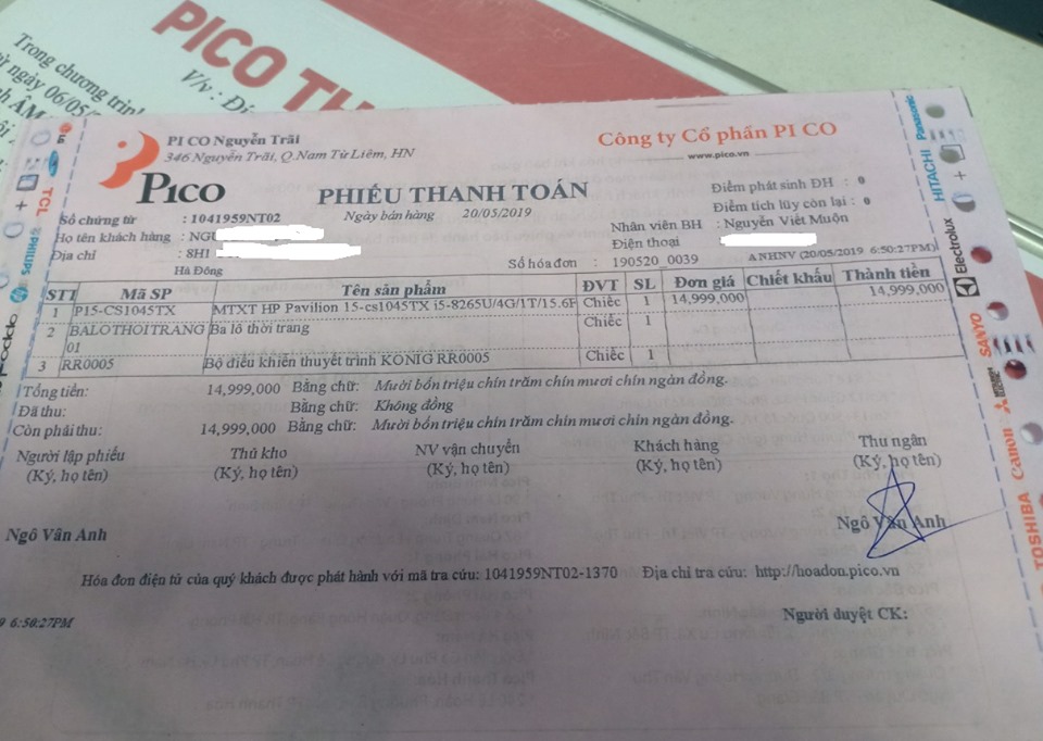 Theo phản ánh của chị Nguyễn Thị L. (SN 1992, trú tại quận Hà Đông, Hà Nội) tới tòa soạn Việt Nam hội nhập, cho biết: Do đang cần mua một chiếc máy tính mới phục vụ cho công việc, nên vào ngày 20/5 vừa qua chị có tới siêu thị điện máy Pico tại địa chỉ số 346 đường Nguyễn Trãi (quận Nam Từ Liêm, Hà Nội) để tìm hiểu.