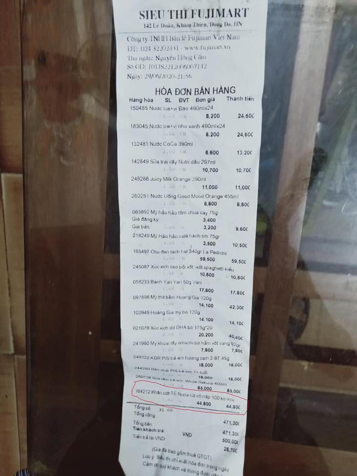Hóa đơn mua hàng của chị H. tại siêu thị FujiMart số 142 Lê Duẩn (Ảnh Fb: Binh Lee).Với tiêu chí đem sự “Fresh Everyday - Tươi ngon mỗi ngày” của từng sản phẩm đến tay người tiêu dùng, FujiMart sẽ áp dụng những bí quyết hoạt động cùng công nghệ của các siêu thị ẩm thực hàng đầu của Nhật Bản. Thế nhưng chất lượng sản phẩm và sự phục vụ dường như đang đi ngược lại khi để khách hàng sử dụng hàng mốc, nghe “chửi” từ nhân viên.
