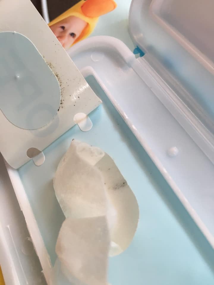 Chưa dừng lại, khi về đến nhà và kiểm tra lại số hàng hóa đã mua tại siêu thị, chị H. phát hiện sản phẩm khăn ướt có giá 44.800 đồng bị mốc sau khi gỡ nắp để sử dụng.