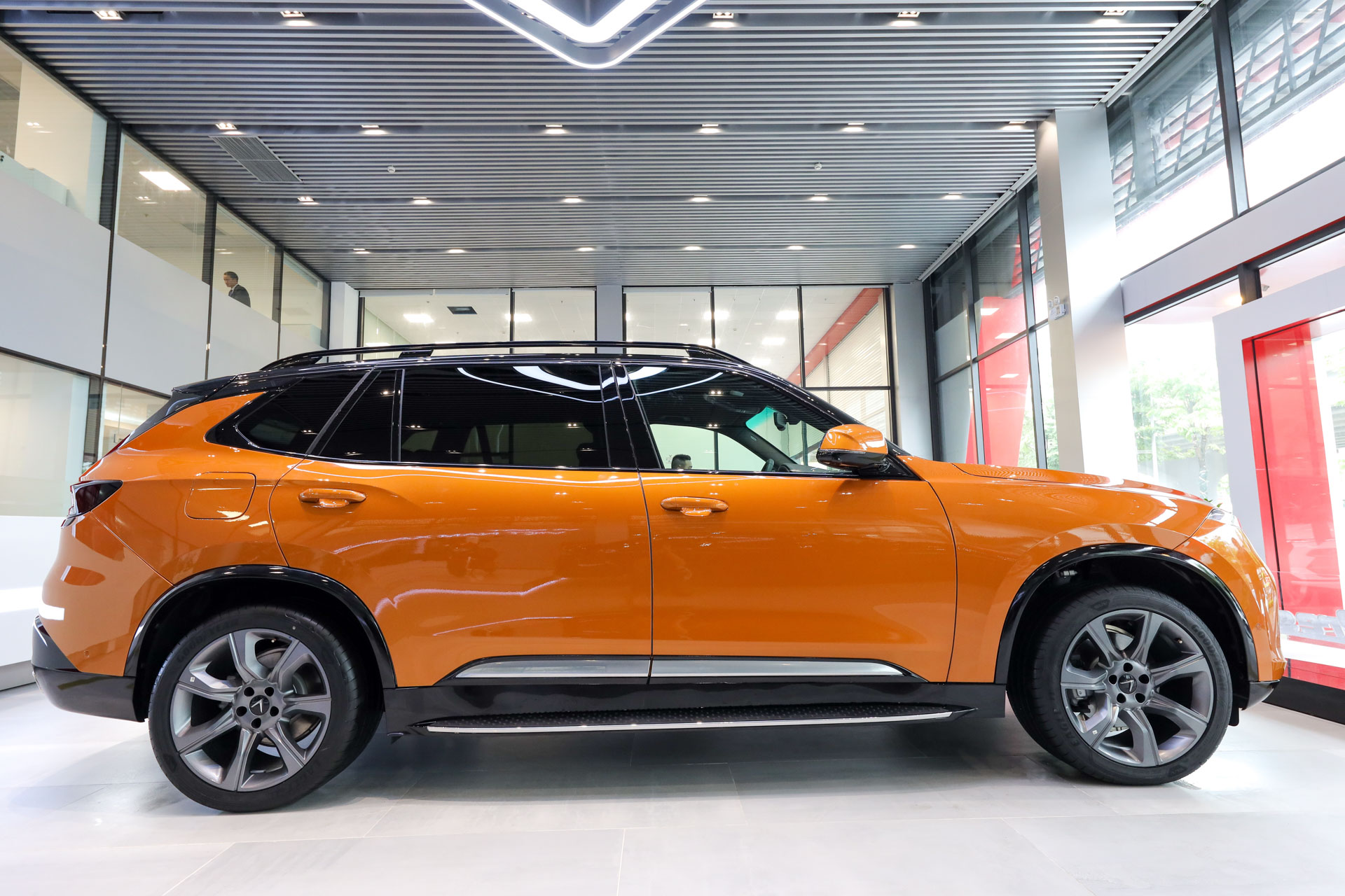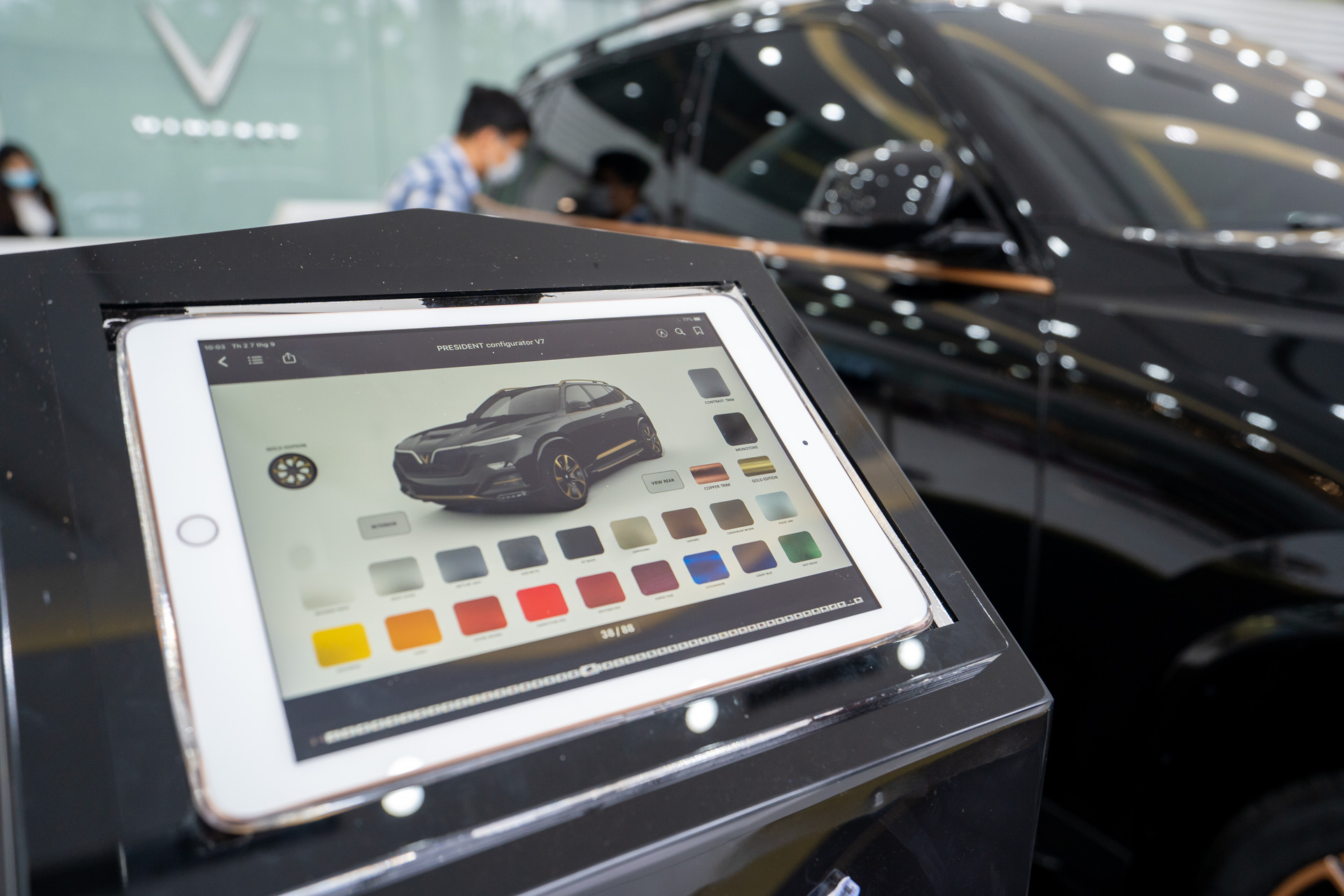 Bất chấp trời mưa xối xả, ngay trong buổi sáng 7/9, khách đã tấp nập kéo đến showroom Đại Việt (quận Long Biên), 1 trong 2 địa điểm tại Hà Nội trưng bày mẫu xe President. Đây là một trong những mẫu SUV mạnh mẽ nhất hiện nay, biểu trưng cho chất lượng của thương hiệu ô tô Việt sau 2 năm ra mắt. Đại diện VinFast cho biết hãng mong muốn giới thiệu mẫu xe này đến những người Việt Nam thành đạt, tiên phong và có tinh thần tự tôn dân tộc.