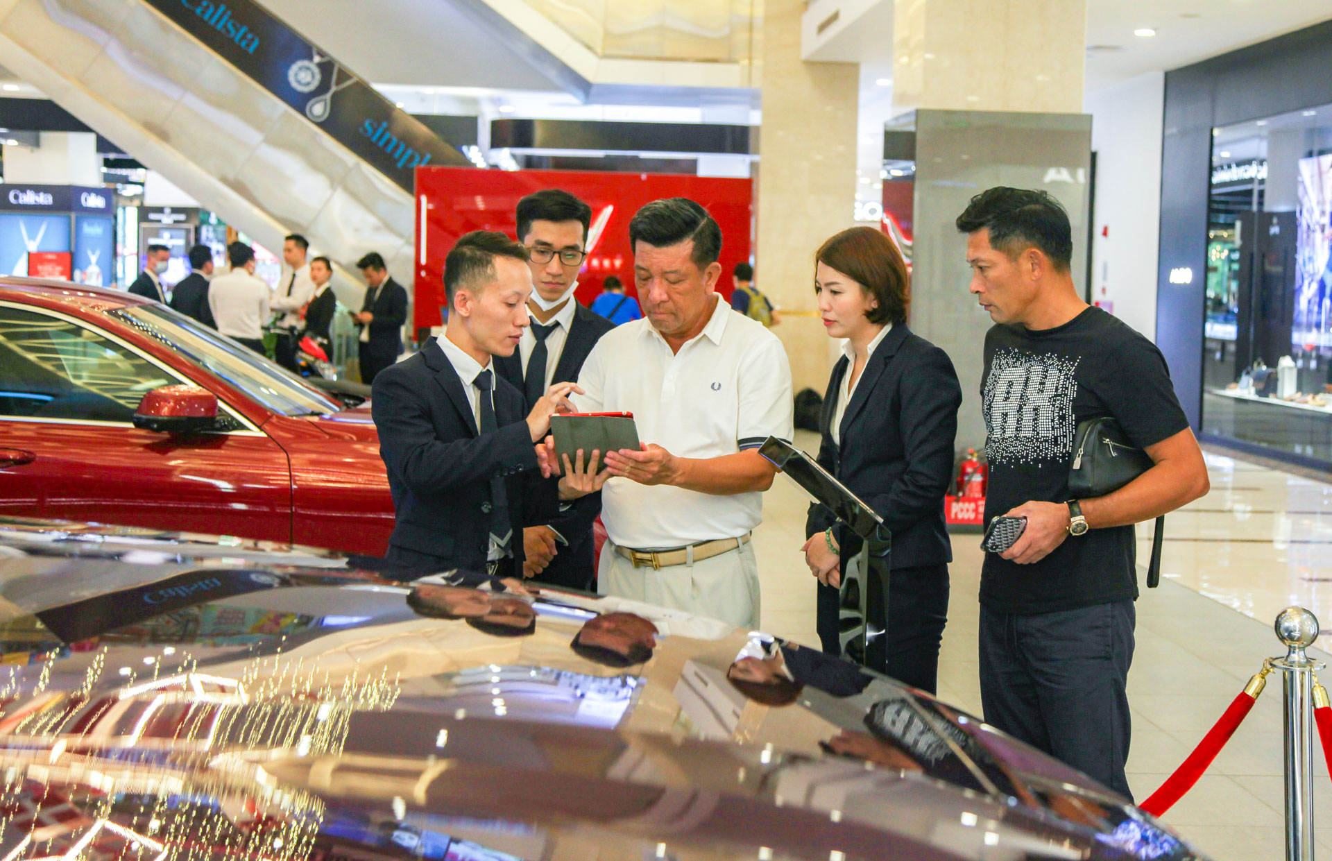 Cùng thời điểm, các nhân viên của showroom Đồng Khởi (Vincom Đồng Khởi, TP.HCM) đã có một ngày làm việc vất vả khi rất đông khách quan tâm, tìm hiểu chiếc VinFast President. Một trong những điểm nhấn của VinFast President là trang bị động cơ V8 6.2L với công suất tối đa 420 mã lực, mô-men xoắn cực đại 624 Nm, kết hợp cùng hộp số tự động 8 cấp và hệ dẫn động 4 bánh toàn thời gian, giúp xe có khả năng tăng tốc 0-100 km/h chỉ trong 6,8 giây.