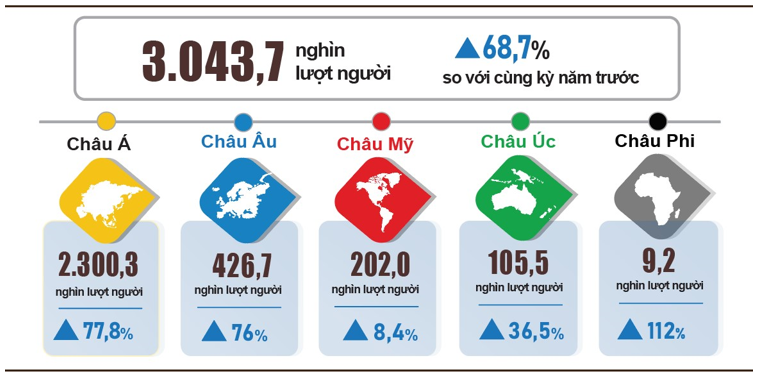Khách quốc tế đến Việt Nam 2 tháng đầu năm 2024 phân theo vùng lãnh thổ