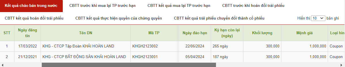 Còn lô trái phiếu KHGH2123002 được trái chủ thông qua kéo dài kỳ hạn thêm một năm đến ngày 22/06/2024, đồng thời tăng lãi suất từ 12% lên 13.5%/năm và điều chỉnh kỳ tính lãi là hai tháng một lần vào ngày 22 hàng tháng cho kỳ từ ngày 22/06/2023 đến 22/06/2024.