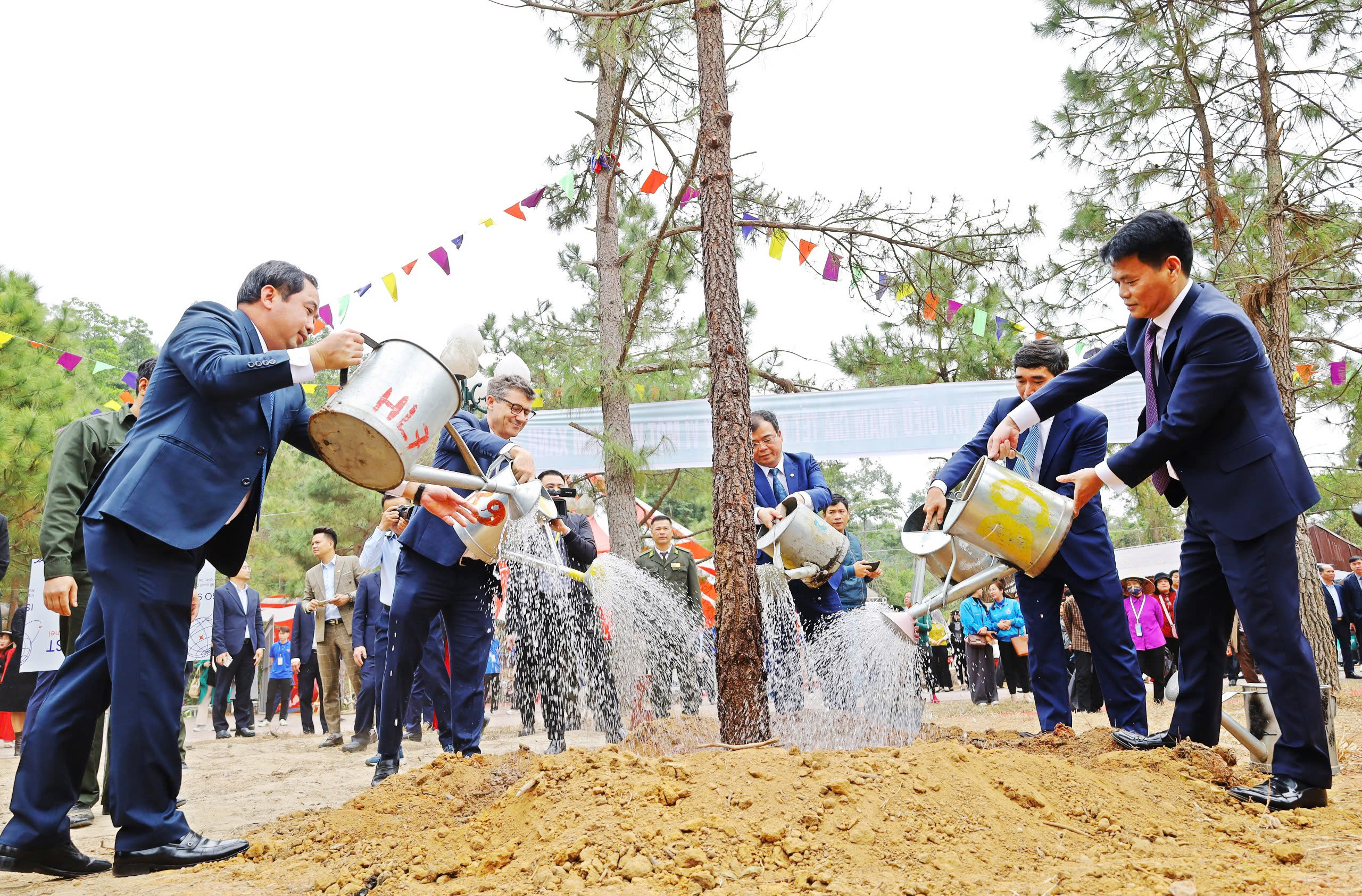 Các đồng chí Lãnh đạo tỉnh và khách mời tham gia trồng cây tại Côn Sơn.