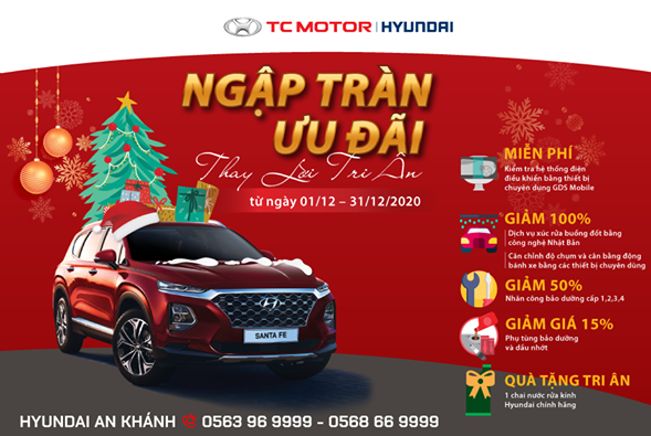 Nhân dịp khai trương, Hyundai An Khánh cũng dành tặng nhiều chương trình ưu đãi hấp dẫn “ thay lời chi ân” cho toàn bộ khách hàng đưa xe vào vào làm dịch vụ. Cụ thể :