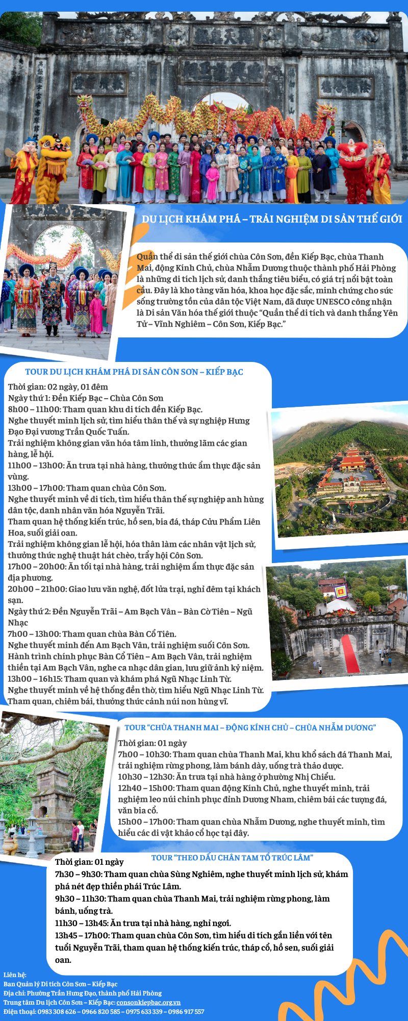 Với du khách trong và ngoài nước, Côn Sơn - Kiếp Bạc là cánh cửa đưa ta trở về với tinh hoa văn hóa Đại Việt. Đó là nơi Nguyễn Trãi viết nên áng Bình Ngô đại cáo, nơi Trần Hưng Đạo dựng cờ kháng chiến, cũng là chốn mà thiền phái Trúc Lâm lan tỏa tinh thần “nhập thế” của Phật giáo Việt Nam.