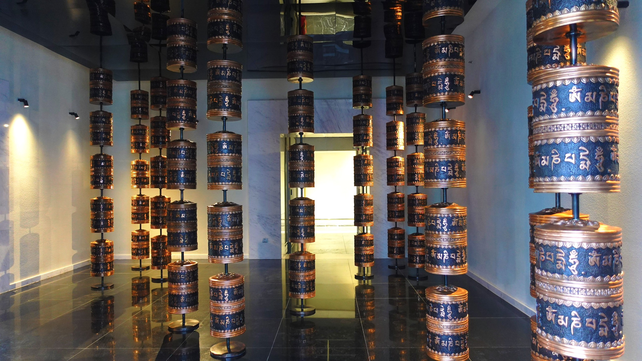 Cũng tại đây, du khách có thể tham quan gian phòng đặc biệt của các trụ Kinh Luân (bánh xe cầu nguyện) - một loại pháp khí được tín đồ Phật giáo Tây Tạng sử dụng cho việc hành trì tụng niệm. Với mỗi vòng xoay bánh xe, người xoay sẽ được trì chú bằng pháp lực của tất cả các câu thần chú bên trong khối trụ. Vì vậy, người ta tin rằng, bánh xe Kinh Luân có thể quay như một cách tạo công đức vô lượng một cách đơn giản nhất, chỉ cần chạm vào bánh xe cầu nguyện đã là một sự tịnh hóa to lớn trong việc xóa bỏ nghiệp chướng.
