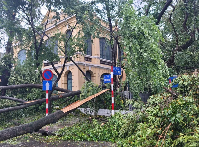 Các tuyến phố ở trung tâm Hà Nội vốn nhiều cây xanh, nhưng chỉ sau 1 đêm khi cơn bão Yagi quét qua đã gãy đổ ngỗn ngang