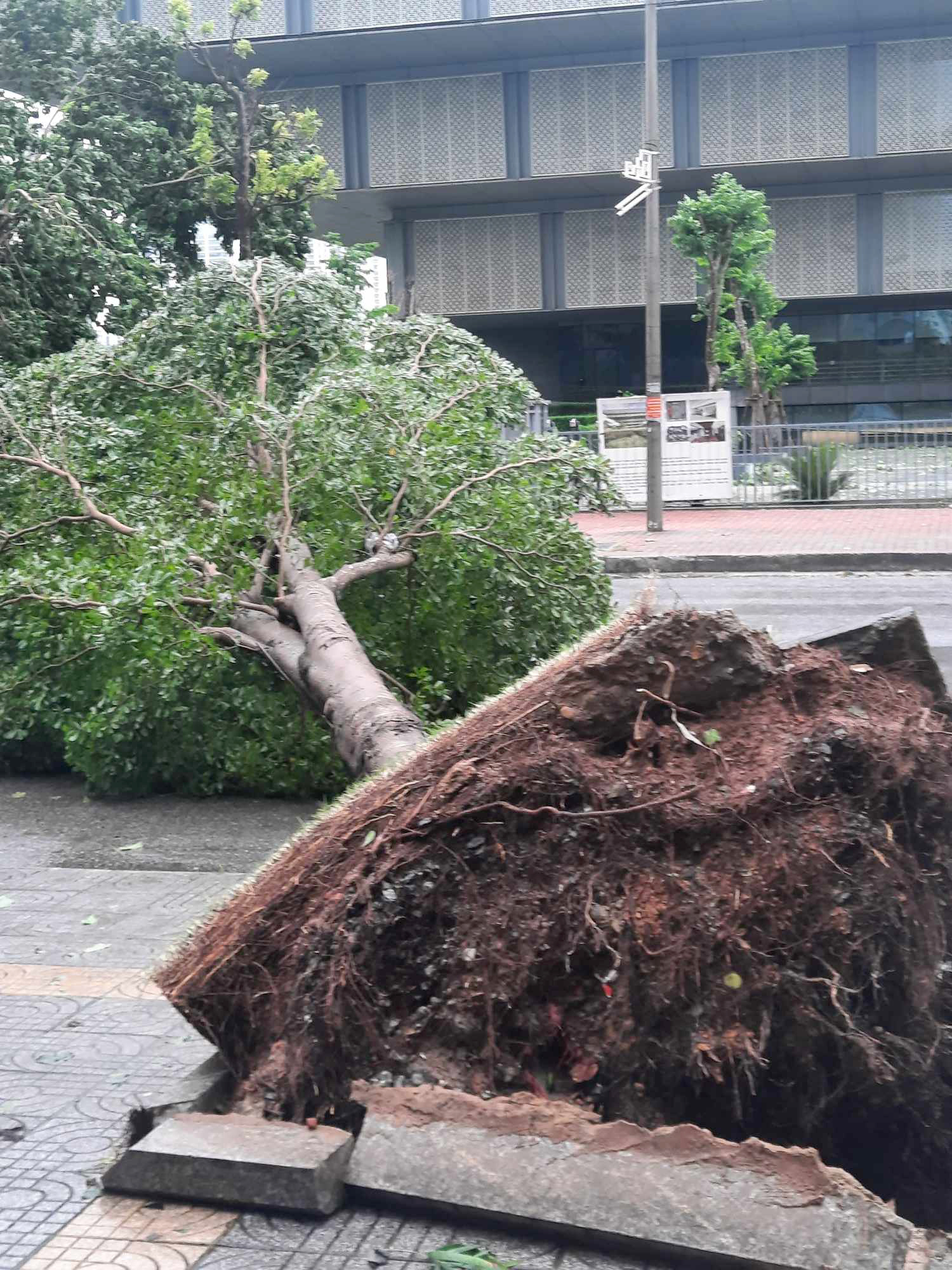 Trên phố Mễ Trì cây xanh cũng gãy đổ rất nhiều. Lực lượng chức năng vẫn đang cố gắng để cắt tỉa và dọn dẹp