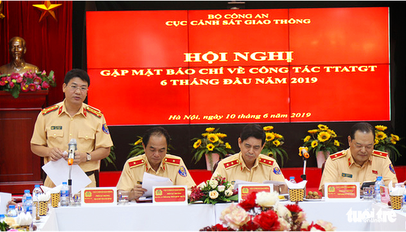 Các lãnh đạo Cục CSGT thông tin về công tác TTATGT 6 tháng đầu năm 2019 - Ảnh: DANH TRỌNG