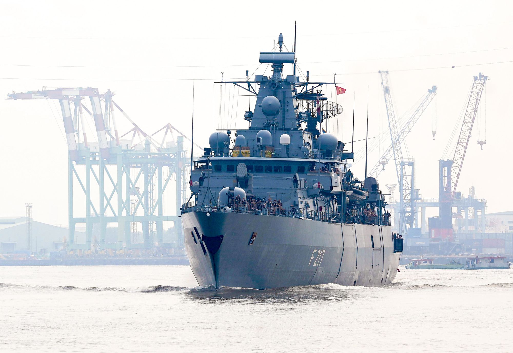 Khinh hạm Bayern của Hải quân Đức cập bến Nhà Rồng (TP.HCM) vào sáng nay 6/1.