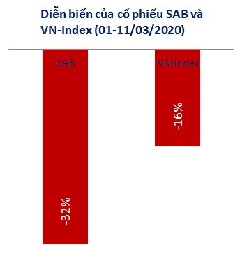 Cổ phiếu Sabeco cũng trong đà giảm trong năm 2020.