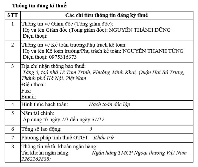 Tuy nhiên, trong công bố thay đổi nội dung đăng ký doanh nghiệp vào tháng 7/2023, tổng số lao động theo thông tin đăng ký thuế của đơn vị này chỉ là 5 người.