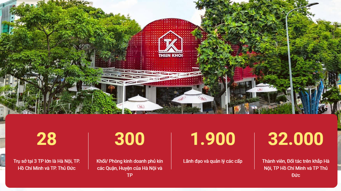 Theo thông tin trên website chính thức của Công ty cổ phần Tập đoàn Thiên Khôi, công ty này giới thiệu có tới 28 chi nhánh với 300 khối/phòng kinh doanh, hơn 1.900 lãnh đạo và quản lý các cấp và hơn 32.000 nhân sự. Tuy nhiên, tổng số lao động đăng ký chính thức chỉ duy nhất có 5 người.