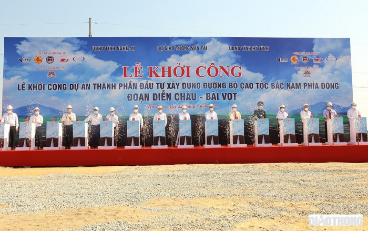 Sáng 22/5, tại địa phận xã Thanh Bình Thịnh, huyện Đức Thọ, tỉnh Hà Tĩnh, Bộ GTVT, UBND tỉnh Hà Tĩnh, UBND tỉnh Nghệ An cùng liên danh nhà đầu tư tổ chức “Lễ khởi công Dự án thành phần đầu tư xây dựng đoạn Diễn Châu - Bãi Vọt".
