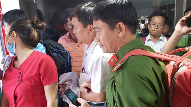 | Ông Hòa (áo trắng) được đưa từ H.Côn Đảo về đất liền (Ảnh: Nguyễn Long) |