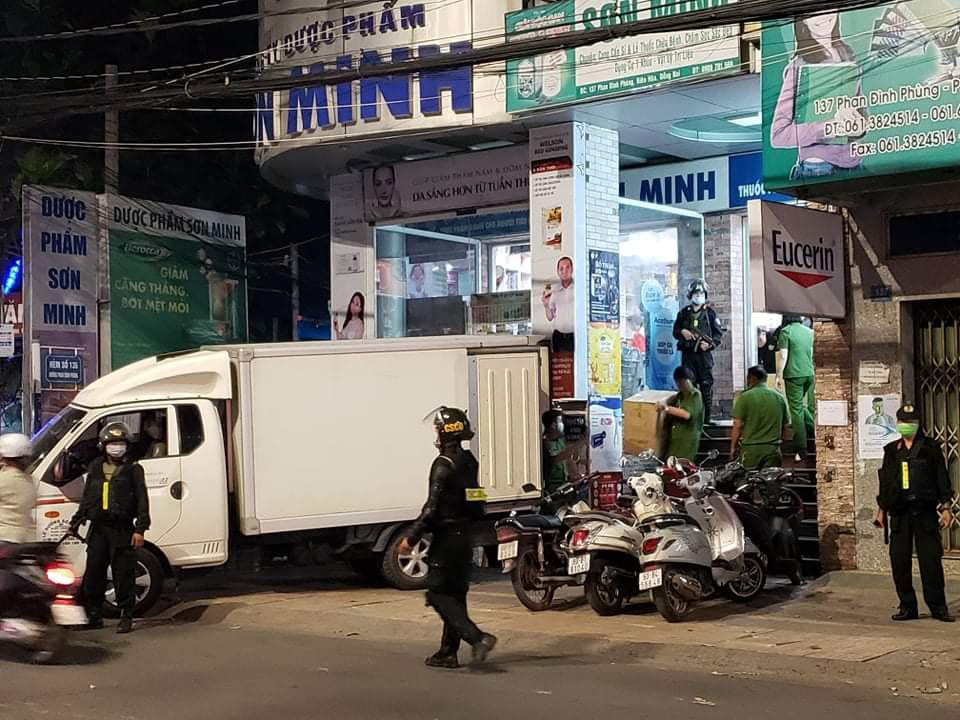 Lực lượng Công an Đồng Nai kiểm tra nhà thuốc Sơn Minh chiều tối 4/12/2020.