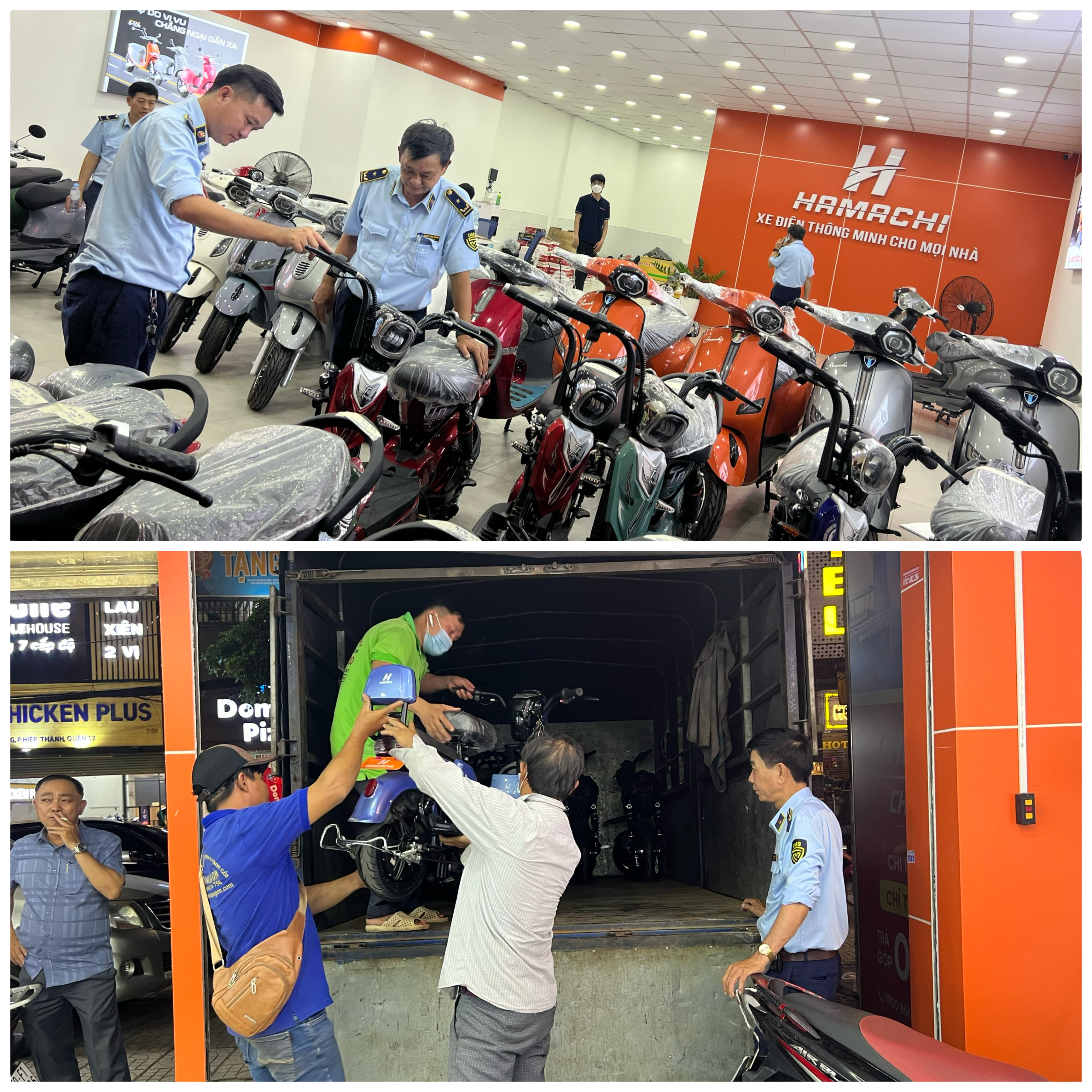 Tại cơ sở kinh doanh Hamachi 222 Lê Văn Khương, quận 12, TP.HCM, Đội QLTT số 12, Cục QLTT TP.HCM đã tiến hành kiểm tra và tạm giữ 30 xe đạp điện các nhãn hiệu Hamachi, Tonochi không có tài liệu chứng minh chất lượng sản phẩm hàng hóa, không gắn tem hợp quy vào sản phẩm lưu thông trên thị trường..