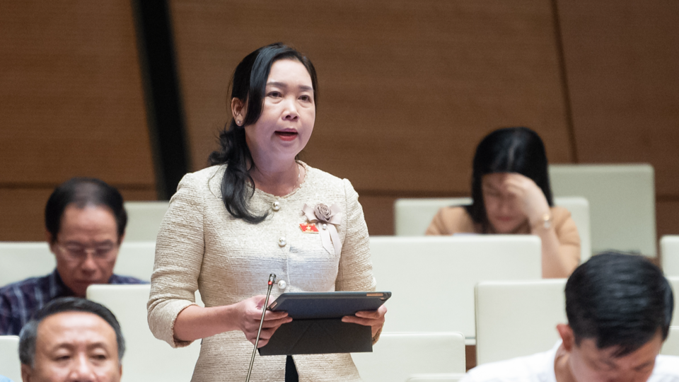 ĐB Quốc hội Lý Tiết Hạnh, Đoàn tỉnh Bình Định phát biểu thảo luận (Ảnh: Quochoi.vn)