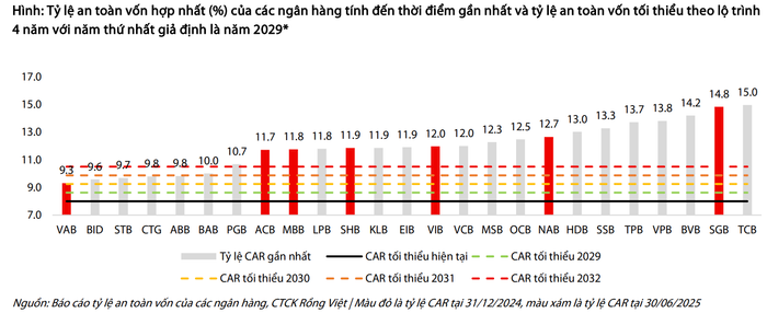 Ở chiều ngược lại, những ngân hàng có hệ số CAR cao trên 12,5% (chưa tính bộ đệm vốn mới) sẽ hưởng lợi. Nhờ bộ đệm vốn dồi dào, họ có khả năng mở rộng tín dụng mạnh mẽ hơn, nhất là khi cơ chế cấp “room” tín dụng được kỳ vọng sẽ thay đổi trong tương lai.