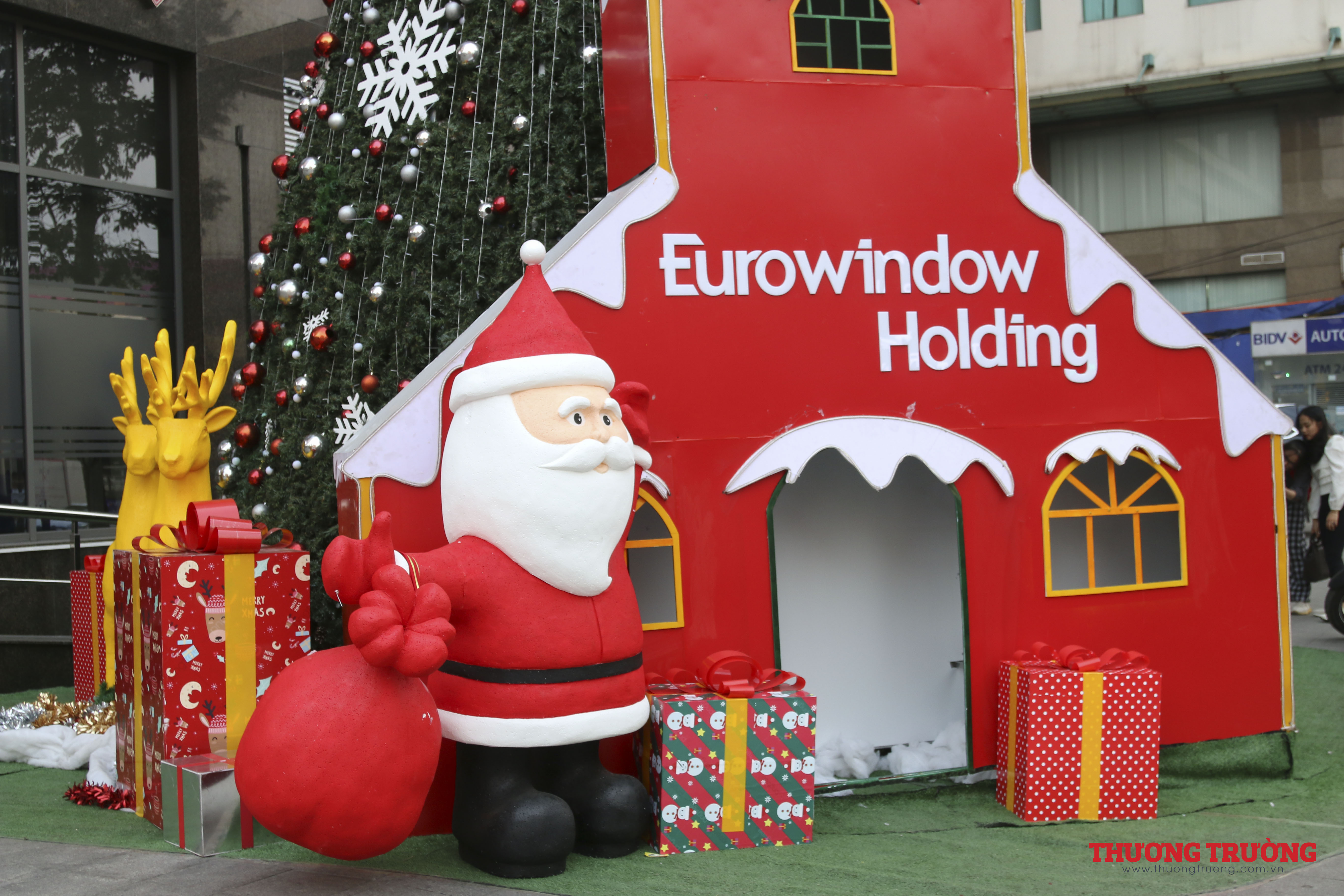 Sảnh lớn của tòa nhà được trang trí thêm cây thông, ngôi nhà tuyết, ông già Noel, tuần lộc... làm cho không khí Noel đang thực sự đến gần.