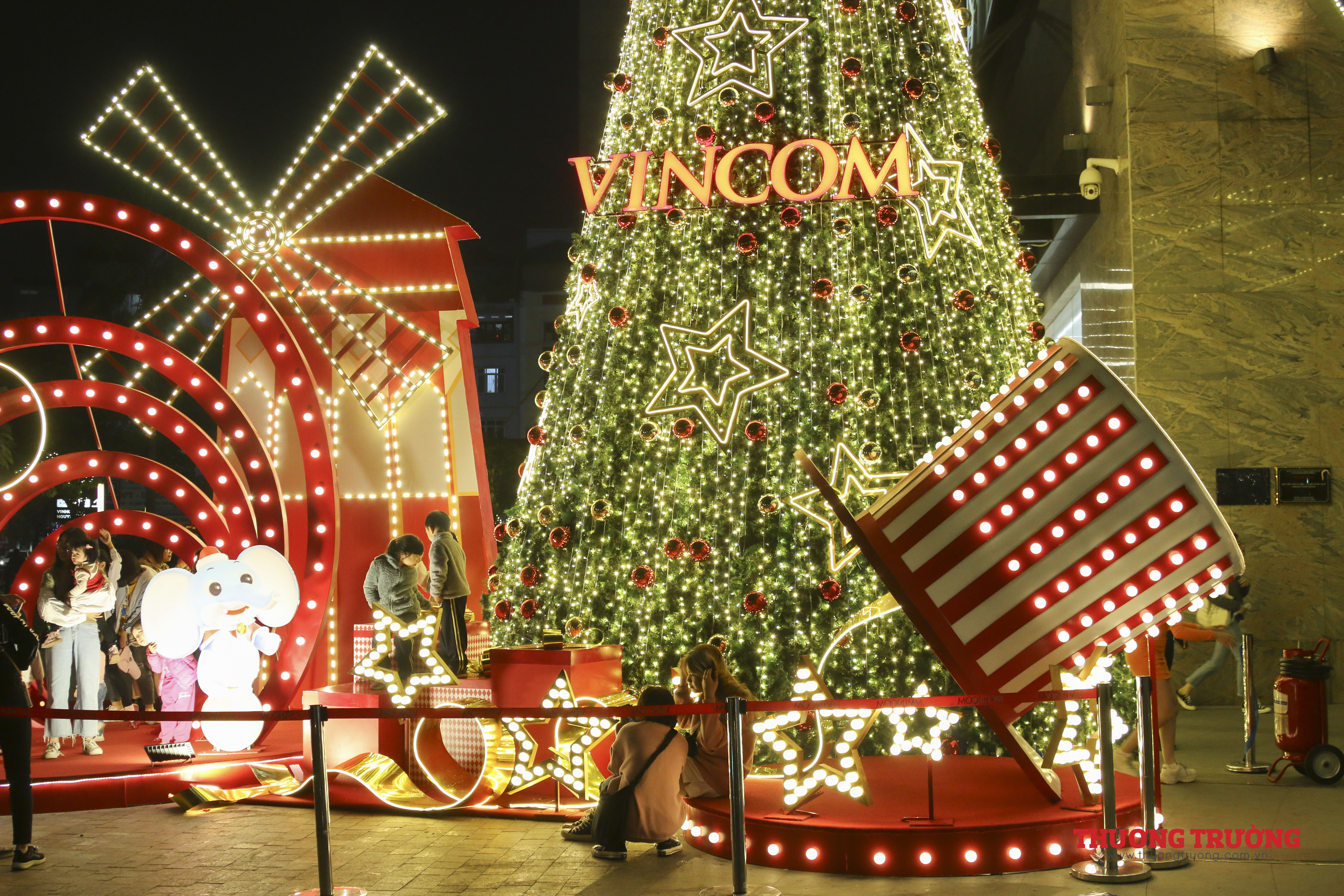 Tại một số khu vui chơi hay trung tâm thương mại lớn, những cây thông Noel khổng lồ rực rỡ đèn màu đã bắt đầu được dựng lên, thu hút sự chú ý của đông đảo người đi đường.