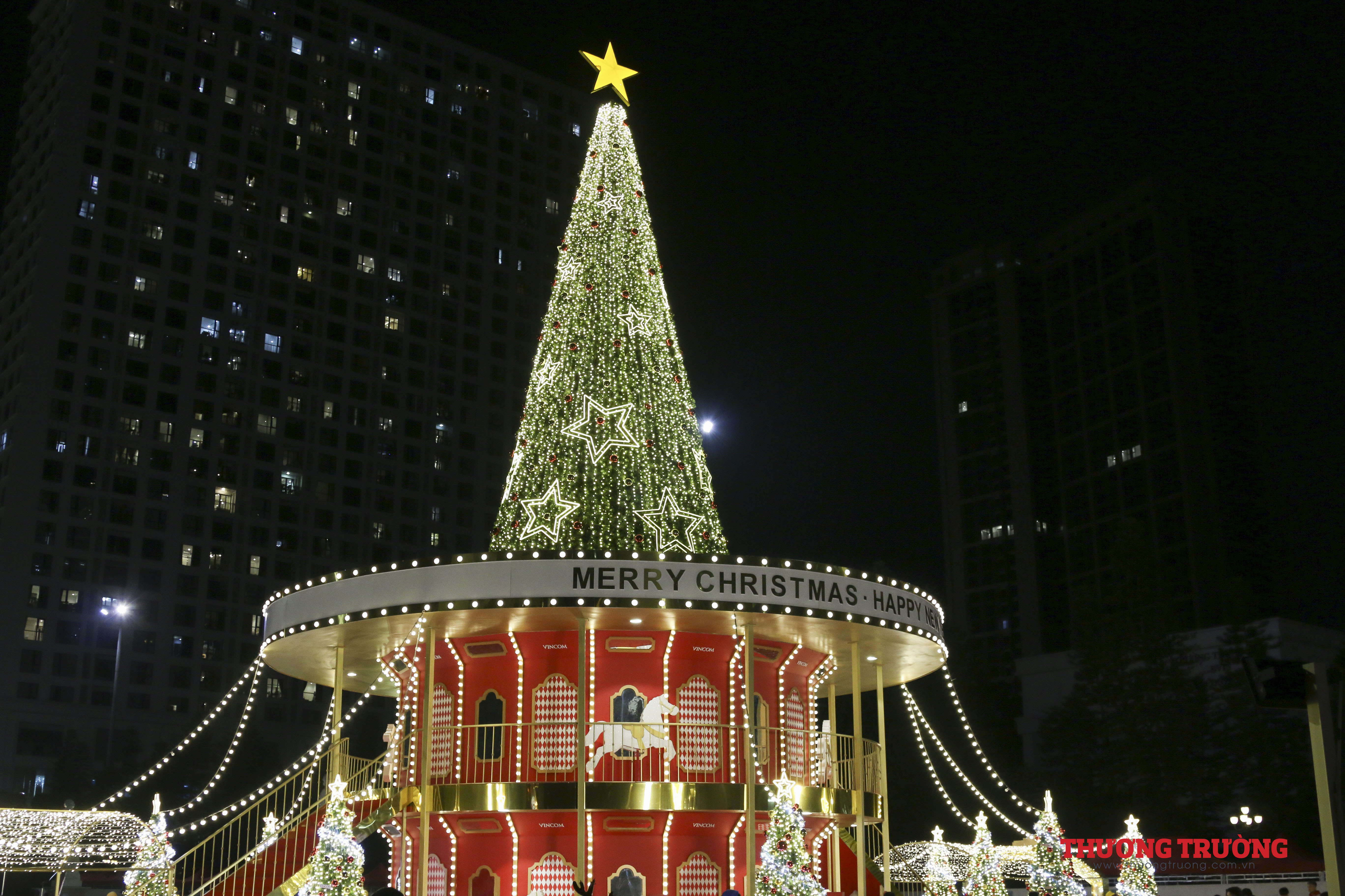 Tại một trung tâm thương mại trên đường Nguyễn Trãi, cây thông Noel khổng lồ cao hơn 15 m với nhiều tiểu cảnh bắt mắt đang thu hút đông đảo người dân tới tham quan, thưởng lãm.