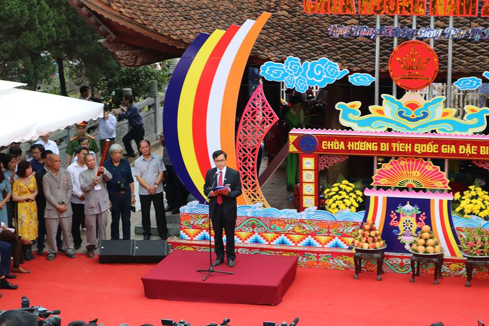 Phát biểu khai mạc tại lễ hội, ông Nguyễn Văn Hoạt - Chủ tịch UBND huyện Mỹ Đức, Trưởng Ban tổ chức lễ hội nhấn mạnh, Di tích lịch sử và danh lam thắng cảnh Quần thể Hương Sơn là một quần thể văn hóa - tôn giáo Việt Nam, gồm 21 ngôi chùa, động thờ Phật, ngôi đền thờ Thần theo tín ngưỡng nông nghiệp bản địa và gắn liền với Phật giáo Đạo tràng.