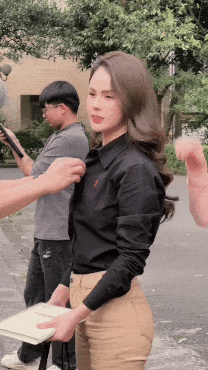 Mới đây, đoạn clip quay lại cảnh hậu trường đóng phim của nữ diễn viên gây sốt mạng xã hội. Trong clip, người đẹp sinh năm 1990 được khen ngợi diện mạo trẻ đẹp cùng gương mặt thon thả, có nét lai tây.