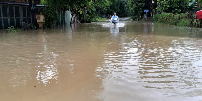 | Tuyến đường Thanh Niên tại TP Yên Bái bị ngập cục bộ. Ảnh: Báo TNMT |