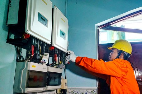 Điện lực kiểm tra inverter công trình NLMT lắp trên mái nhà dân dụng.
