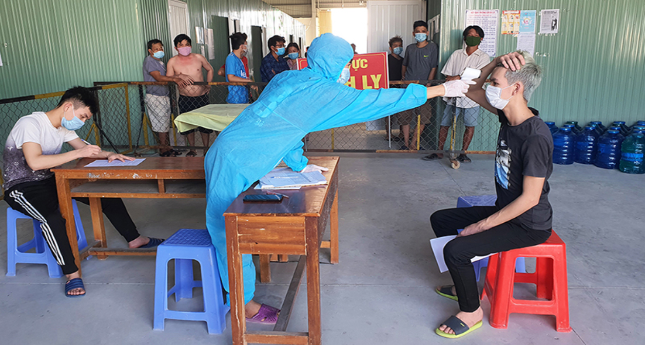 Kiểm tra y tế tại một khu cách ly tập trung của TP Hà Tiên.