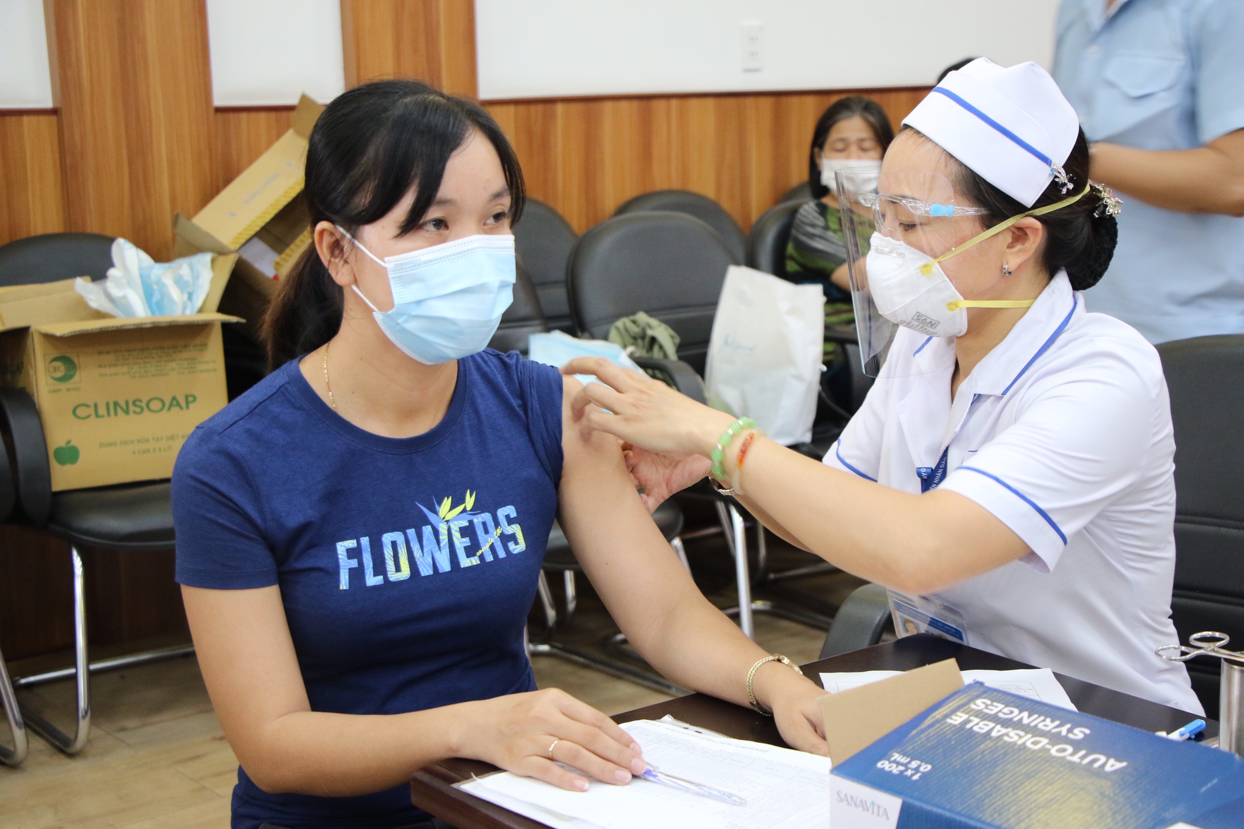 Trước đó, từ ngày 20/6 đến 30/6/2020, đã tiêm ưu tiên mũi 1 cho 320.000 công nhân; từ tháng 10 đến nay đã tiêm mũi 2 cho hầu hết công nhân đang làm việc tại các khu.
