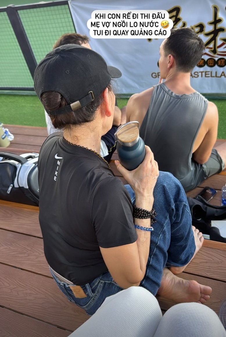 Mới đây, Hồ Ngọc Hà đã chia sẻ khoảnh khắc mẹ ruột là bà Ngọc Hương xuất hiện giản dị bên con rể Kim Lý tại một giải đấu thể thao. Trong bức ảnh, mẹ ruột nữ ca sĩ mang nước uống và các vật dụng hỗ trợ chăm sóc cho con rể.