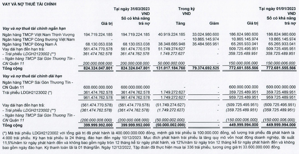 Đáng chú ý LDG có lô trái phiếu gần 400 tỷ đồng sẽ đáo hạn vào cuối năm nay. Tuy nhiên đến cuối quý I/2023, lượng tiền mặt của Công ty chỉ còn hơn 3 tỷ đồng.