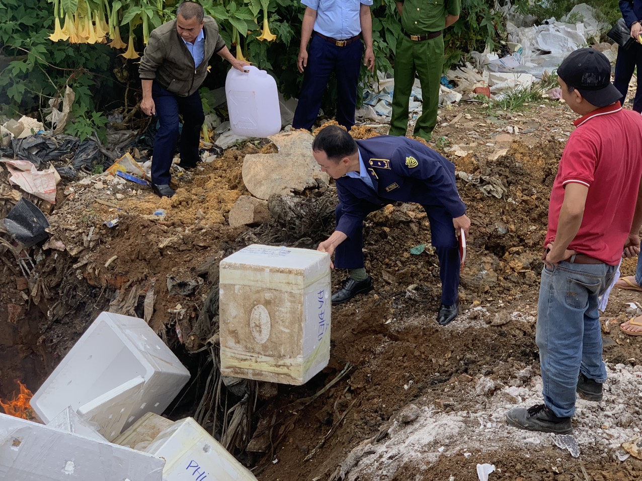 Cục QLTT tỉnh Lâm Đồng đã tiến hành tiêu huỷ 212 kg thực phẩm đông lạnh không rõ nguồn gốc xuất xứ.