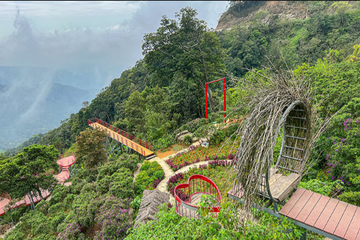 Khu chụp ảnh Cầu Mây là địa điểm nổi tiếng vì sở hữu view và những góc check-in độc đáo cho bạn thỏa sức sáng tạo. Thời điểm tham quan và chụp hình đẹp là khi trời nắng, hoàng hôn hoặc ngay sau cơn mưa với rất nhiều mây vờn xung quanh. Khu chụp ảnh rộng, mất ít nhất nửa tiếng để tham quan hết các điểm.