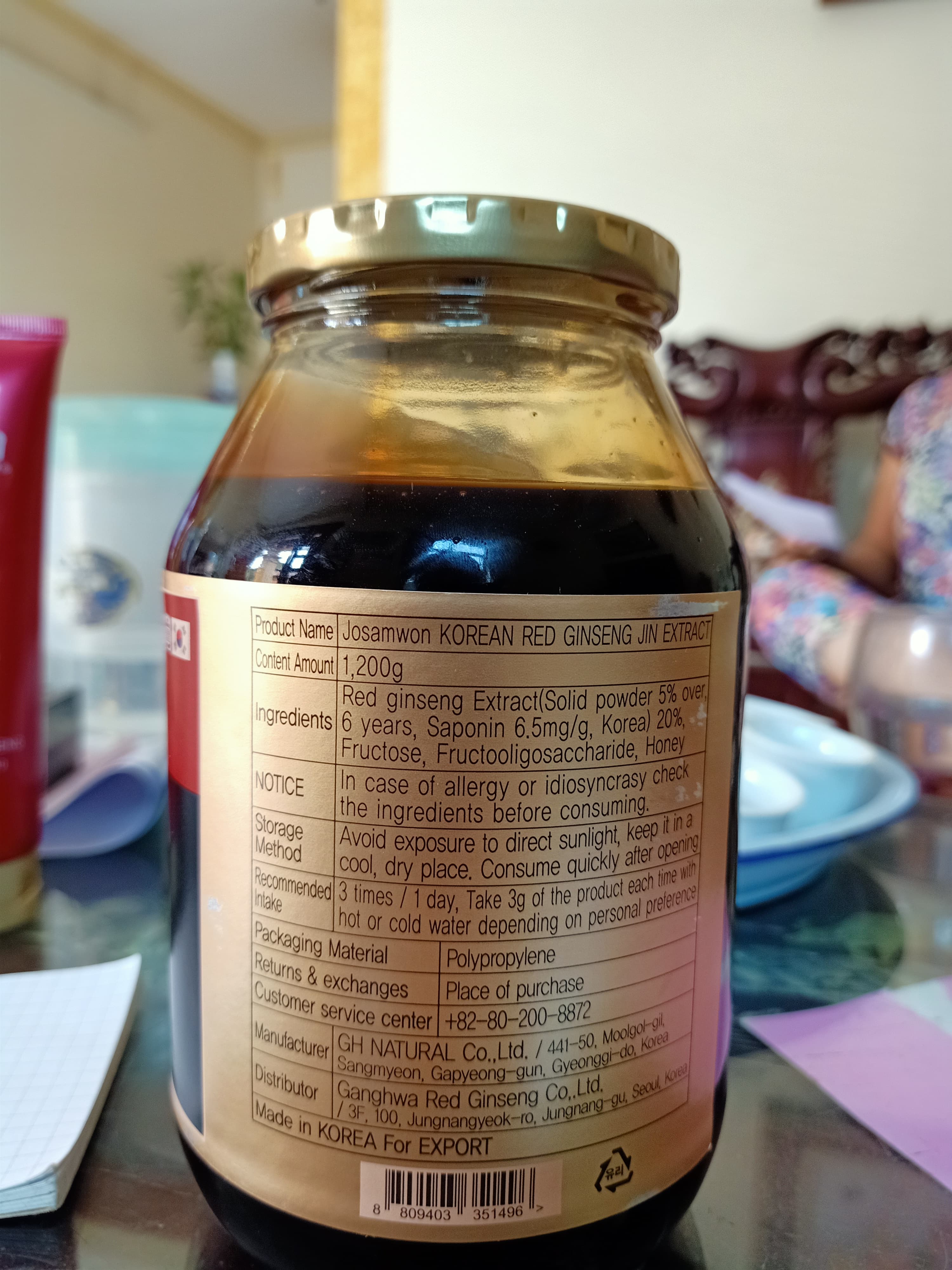 | Thông tin sản phẩm tại bao bì ngoài của cao hồng sâm đang được bán tại xã Bình Minh |